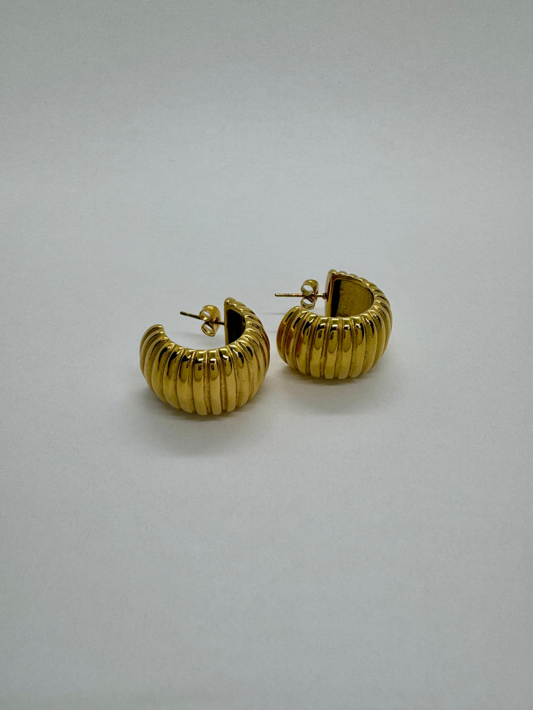 Bold move, here are Cecilia’s hoops. Experience a modern twist on classic style with our golden horizontal stripes stud earrings. Enhace your date night look with these eye catching design earrings. Crafted with precision and built to last. A perfect addition to your jewelry collection.